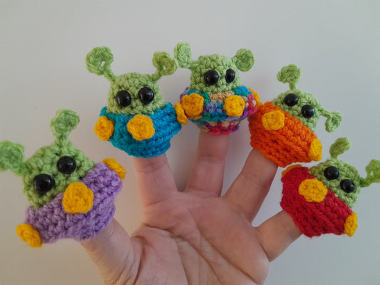 5 little men in their flying saucers finger puppets