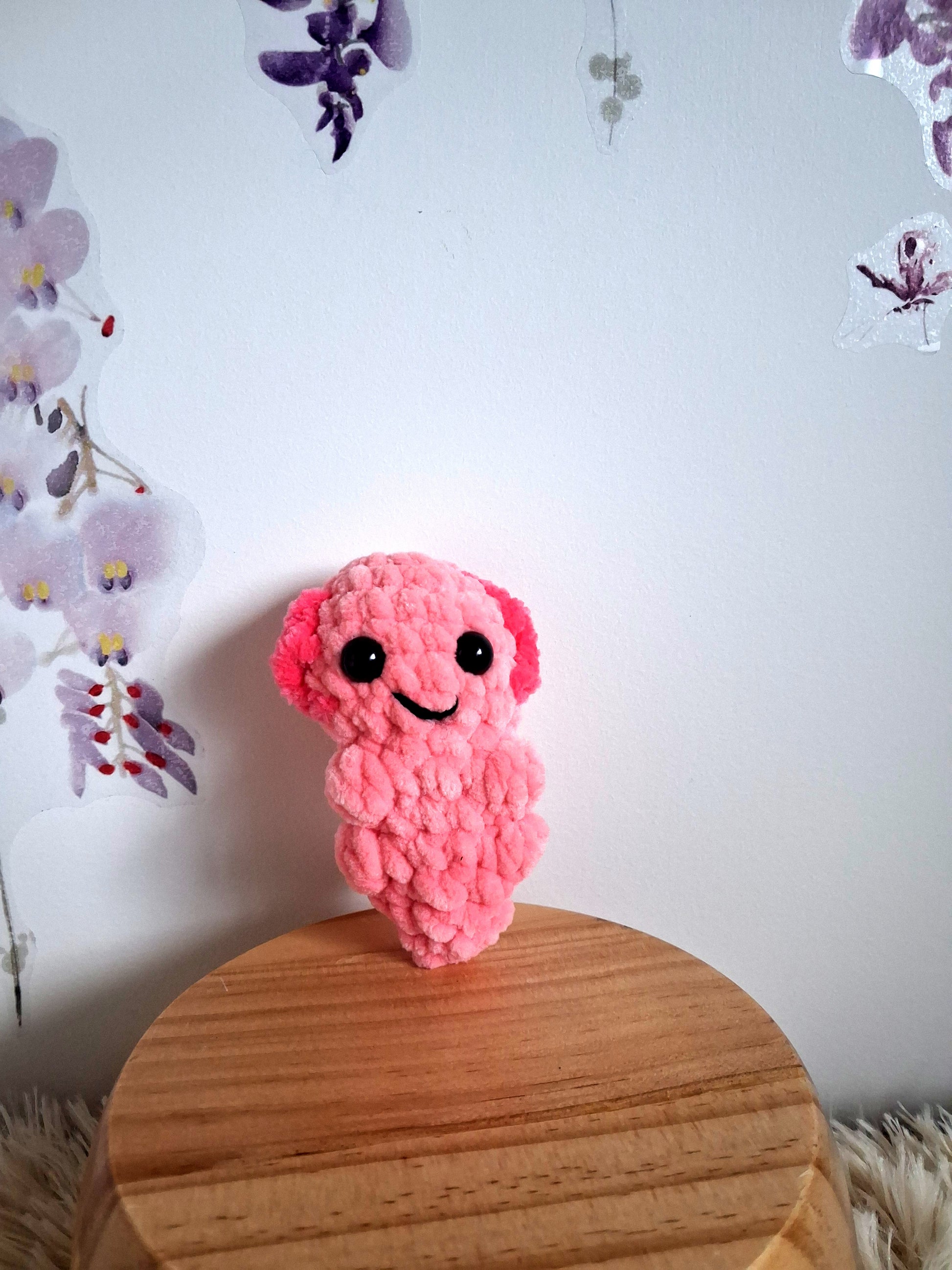 Made from Chenille yarn. Around 9.5 cms. Colours and smile might vary.