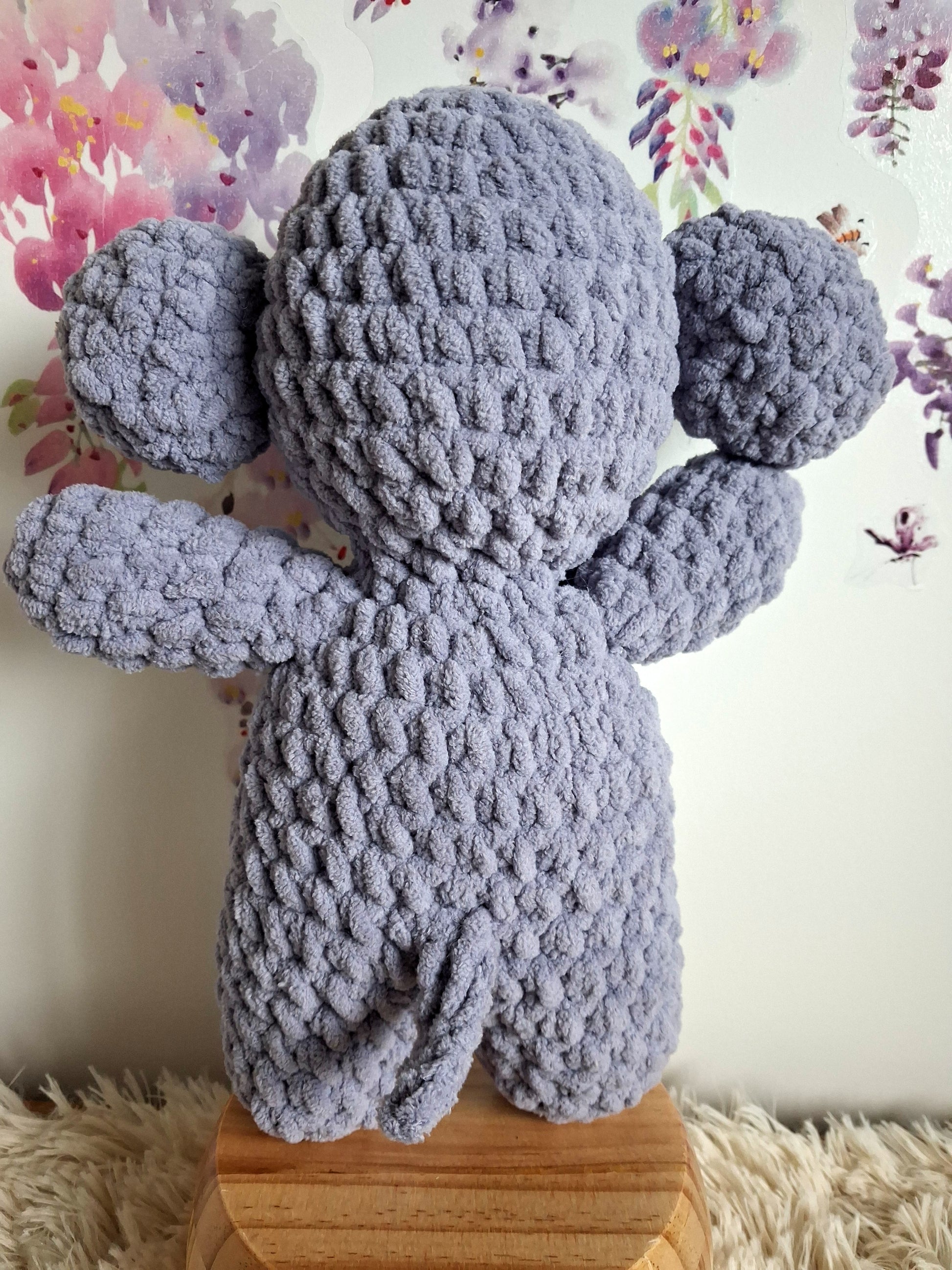 Meet Mr Elephant, a soft and cuddly friend made from cozy chenille yarn, measuring 27 cm by 22 cm — just right for tiny hands! Designed especially for little ones under 3 years old, his crocheted eyes keep playtime safe and snuggly. Perfect for endless imaginative adventures and gentle hugs.