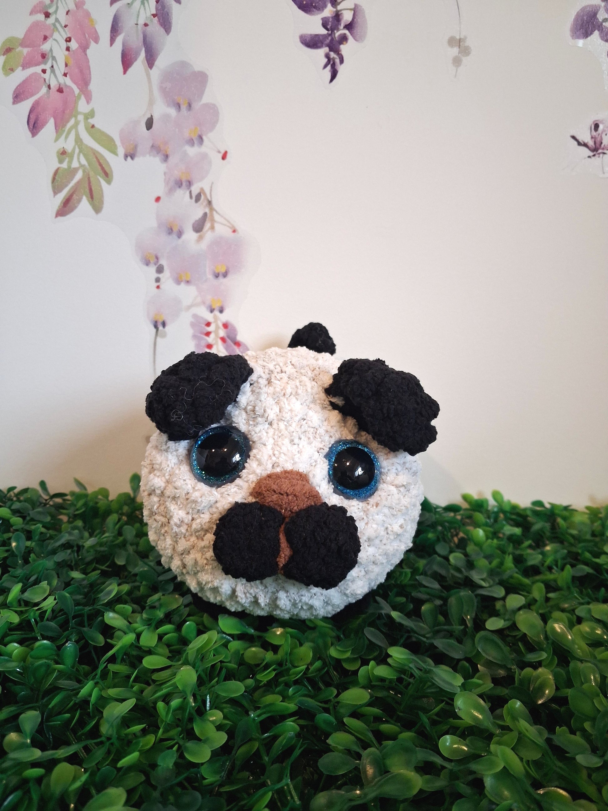Meet your new furry friend! This adorable loaf-shaped pup is handcrafted from super-soft chenille yarn, perfect for snuggling. Measuring 14 cm long and 10 cm high, it's the ideal size for cuddles or display. Featuring charming safety eyes and those signature black ears, this little guy is ready to find his forever home. Ideal for dog lovers of all ages (recommended for ages 3+). A delightful handmade companion that's waiting just for you!